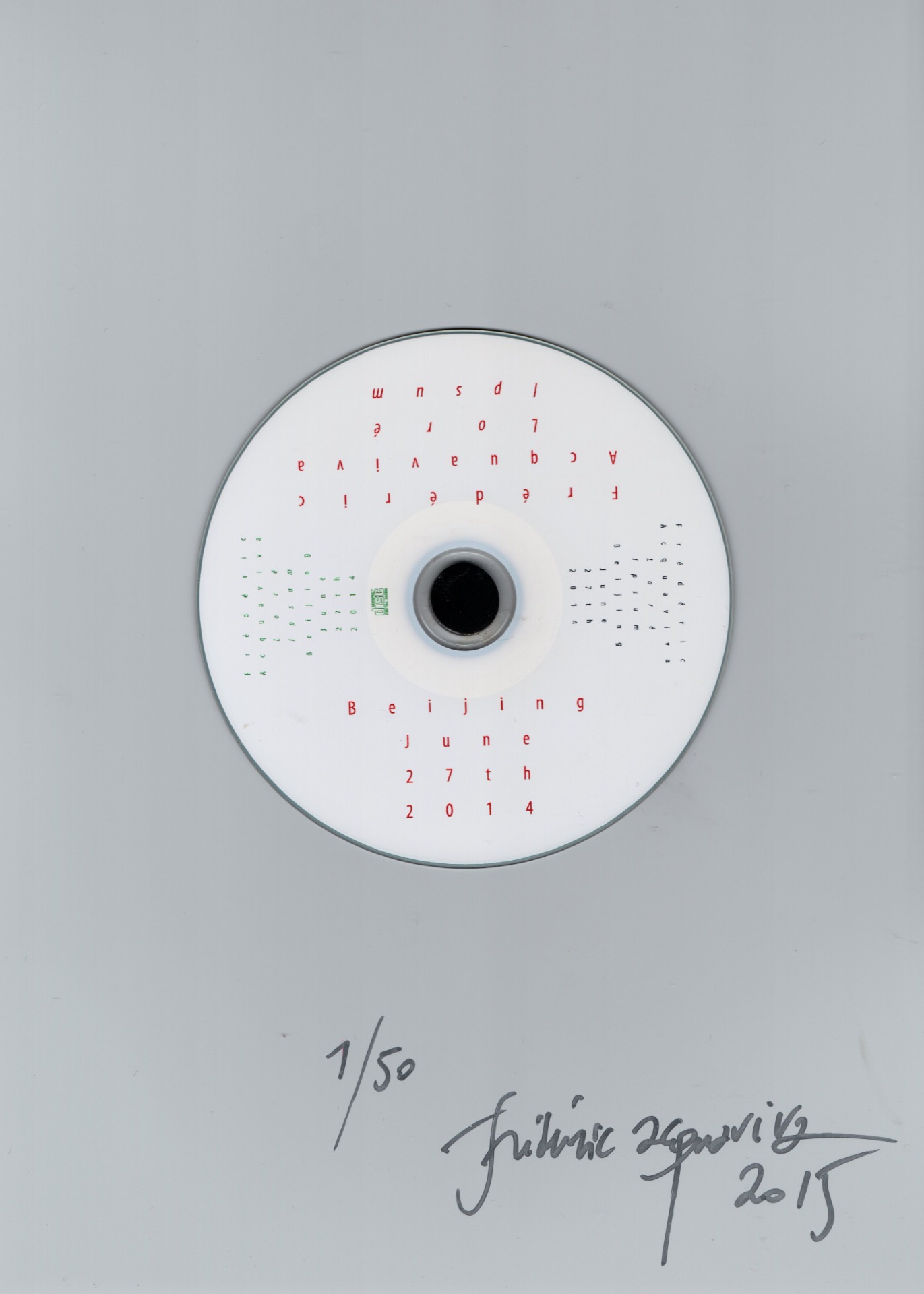 Loré Ipsum (2011-2012), BEIJING VERSION, 50 signed and numbered CD-R on PVC under a printed envelope, B@£, Berlin, 2015