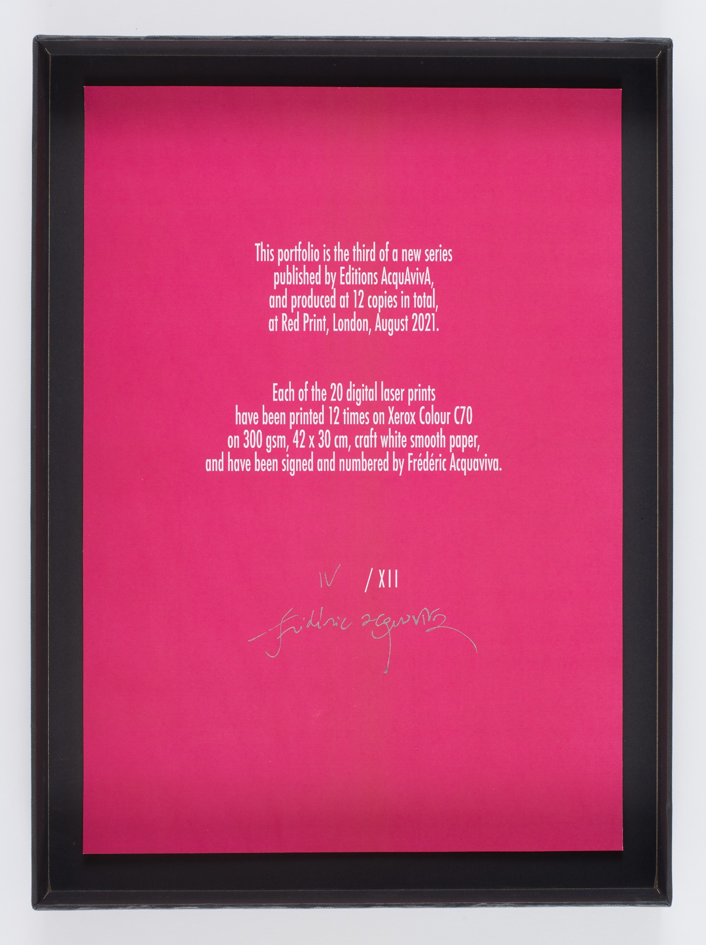 Portfolio at 12 copies with 20 digital prints, 42 x 30 cm, Editions AcquAvivA, 2021